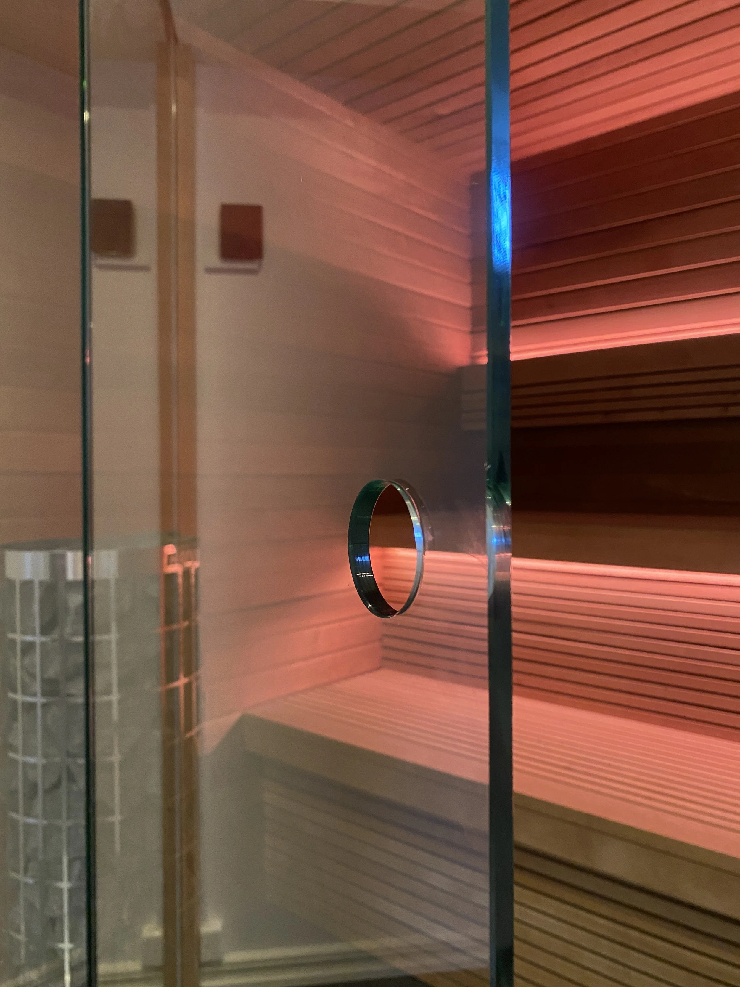En mysig bastu som verkligen sätter guldkant på vardagen. Snyggt designaggregat av Harvia och bastupanel av thermobehandlad asp. Dessutom går LED-belysningen att styra till önskad färg och ljusstyrka.