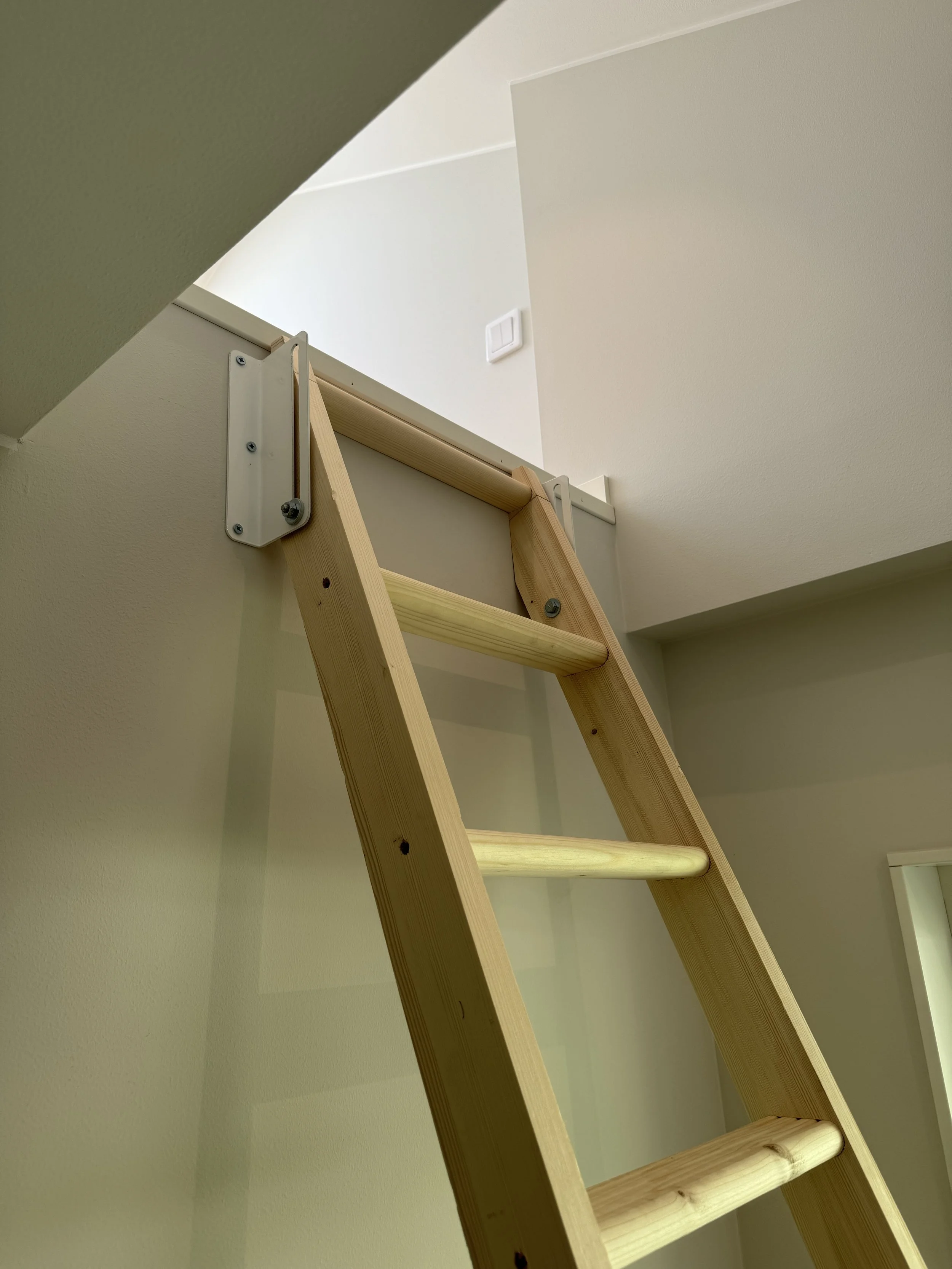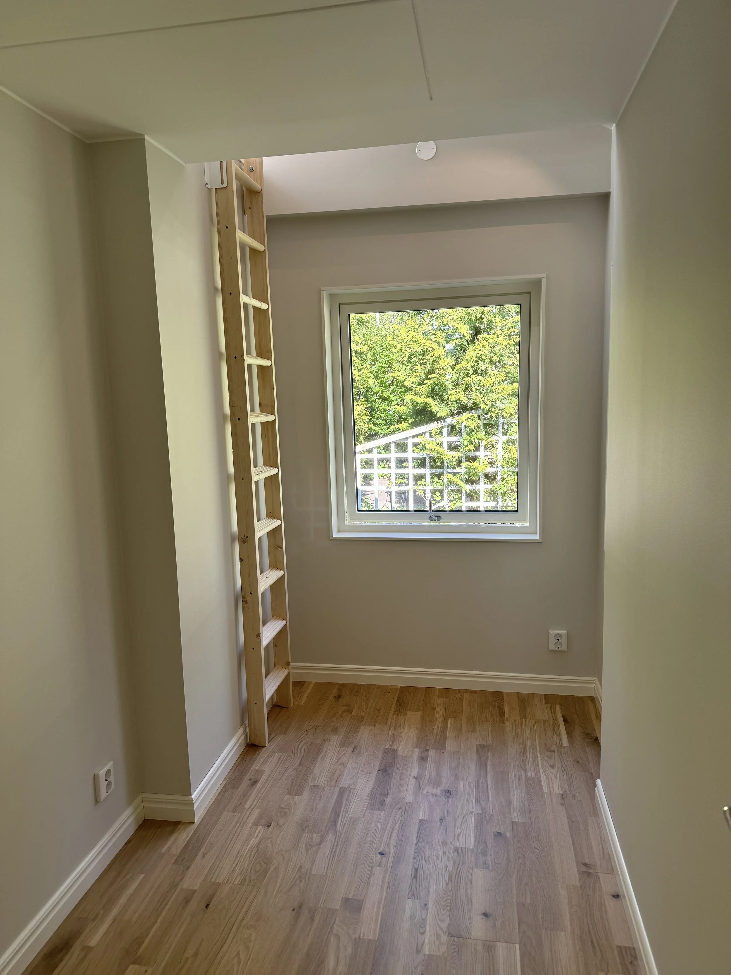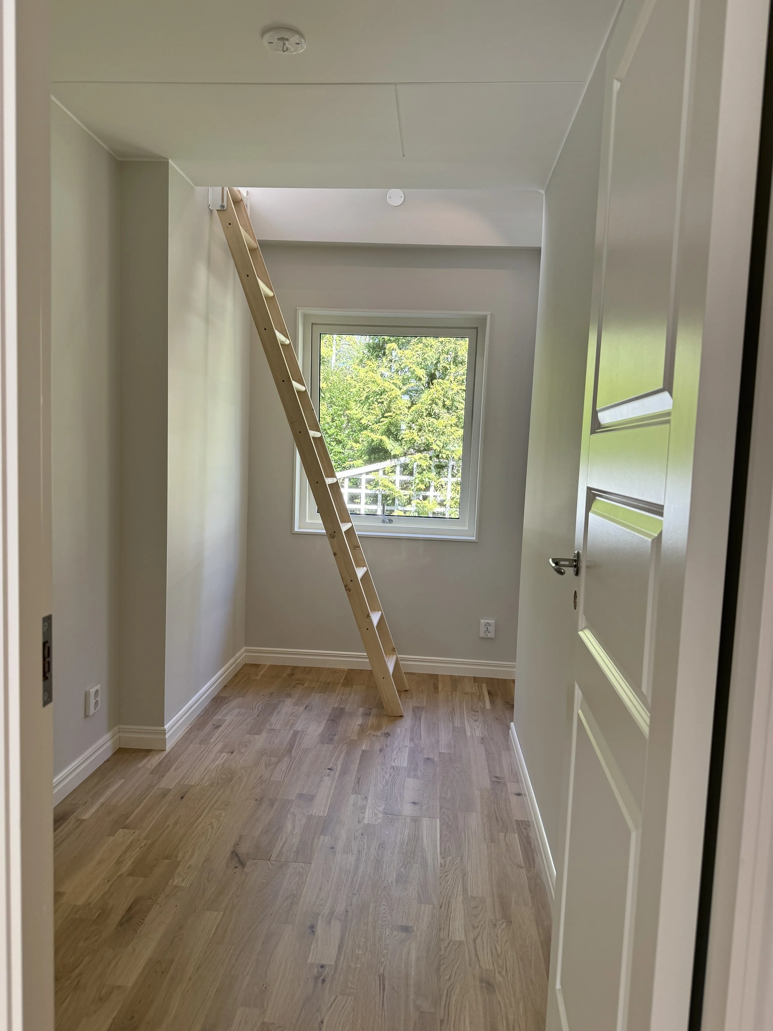 Ibland har ditt hus fler möjligheter än vad du först ser. Här blev ett litet, och outnyttjat, förråd till ett sovrum för barnen. Genom att bygga ett sovloft av den oinredda vinden, med en loftstege ner till det gamla förrådet, blev rummet plötsligt tillräckligt stort för att någon skulle kunna bo där. Takfönstret ger ett härligt ljusinsläpp och loftstegen går enkelt att ställa mot väggen för att få mer utrymme.