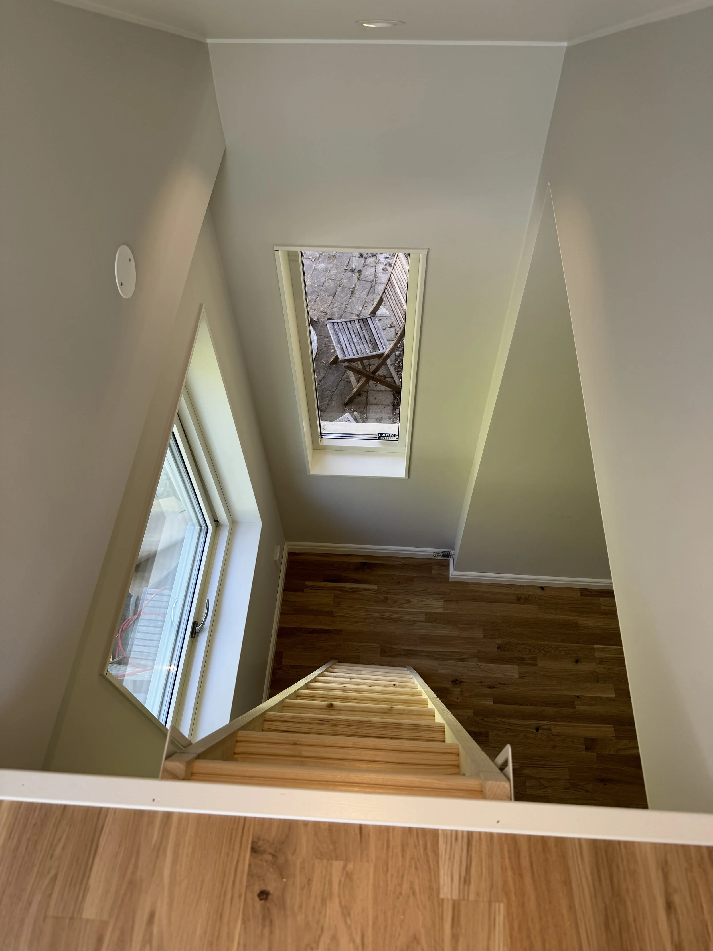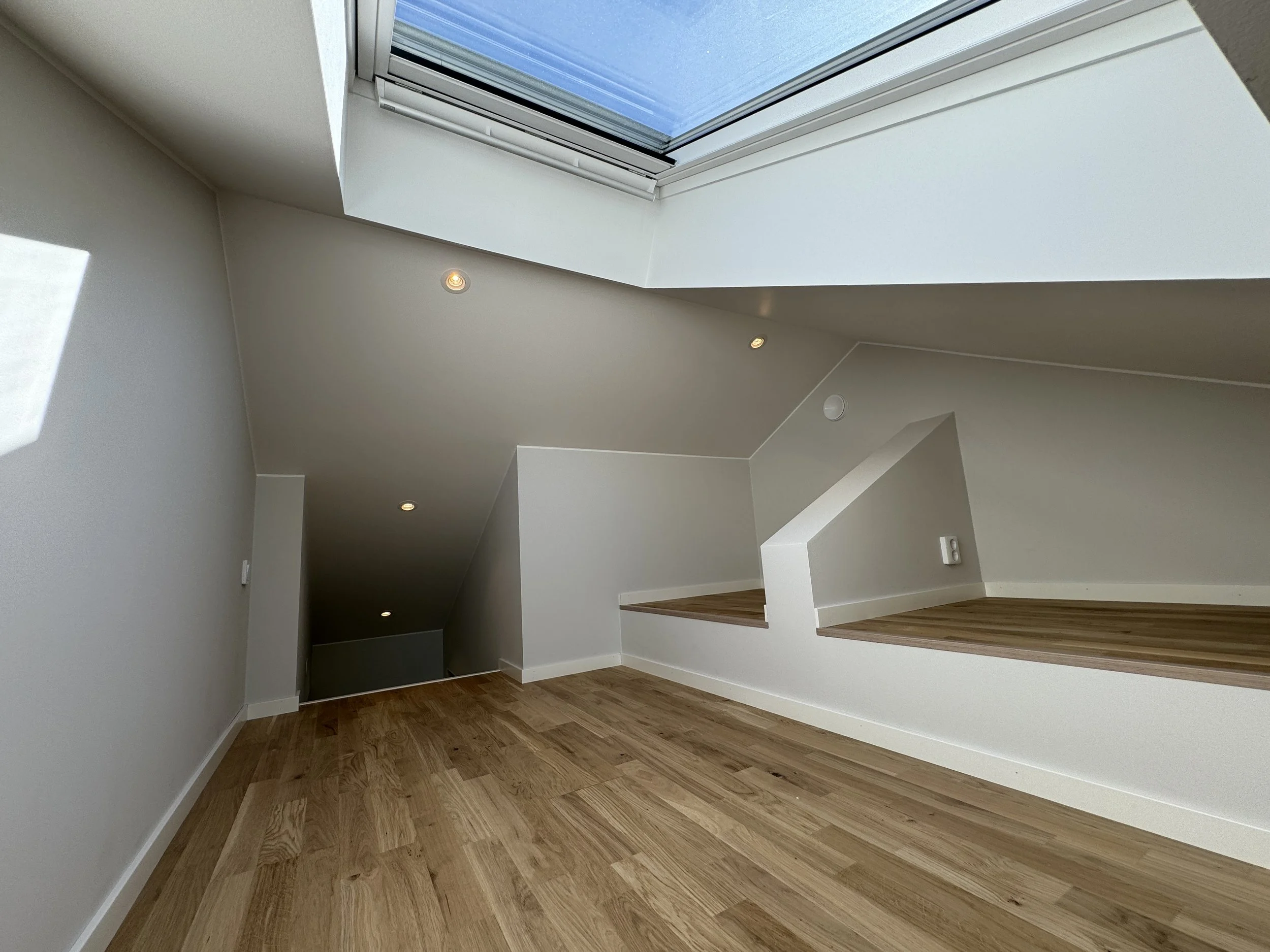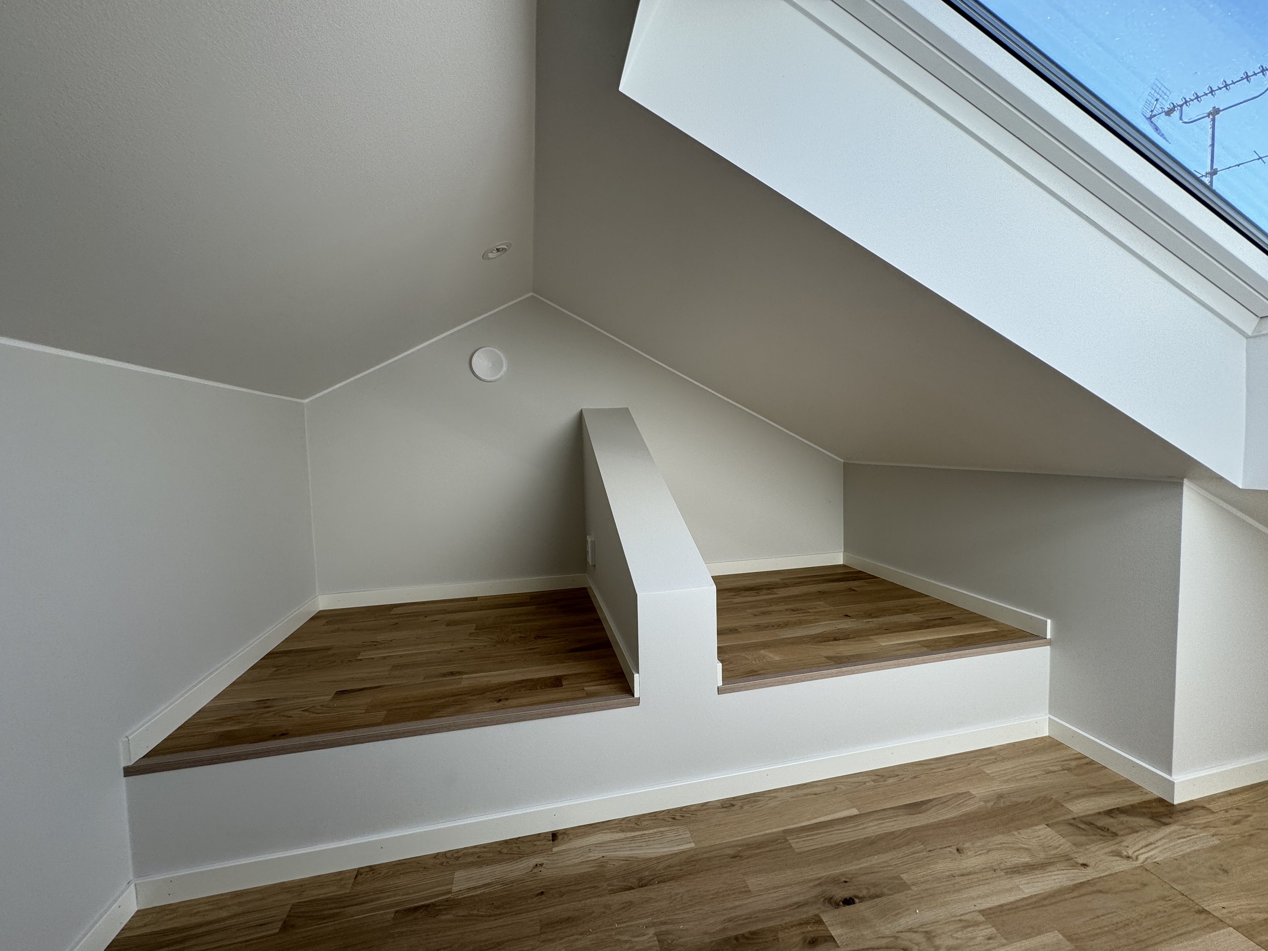 Ibland har ditt hus fler möjligheter än vad du först ser. Här blev ett litet, och outnyttjat, förråd till ett sovrum för barnen. Genom att bygga ett sovloft av den oinredda vinden, med en loftstege ner till det gamla förrådet, blev rummet plötsligt tillräckligt stort för att någon skulle kunna bo där. Takfönstret ger ett härligt ljusinsläpp och loftstegen går enkelt att ställa mot väggen för att få mer utrymme.
